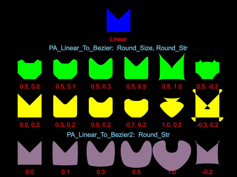off the corners: PA_Linear_To_Bezier, PA_Linear_To_Bezier_Circ, and
