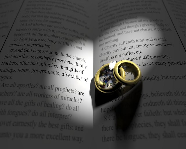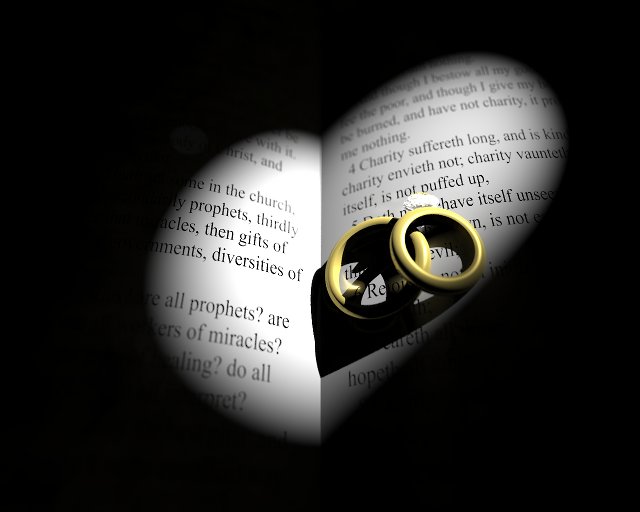 rings were on the opposite side, so they wouldn't obscure the words of that