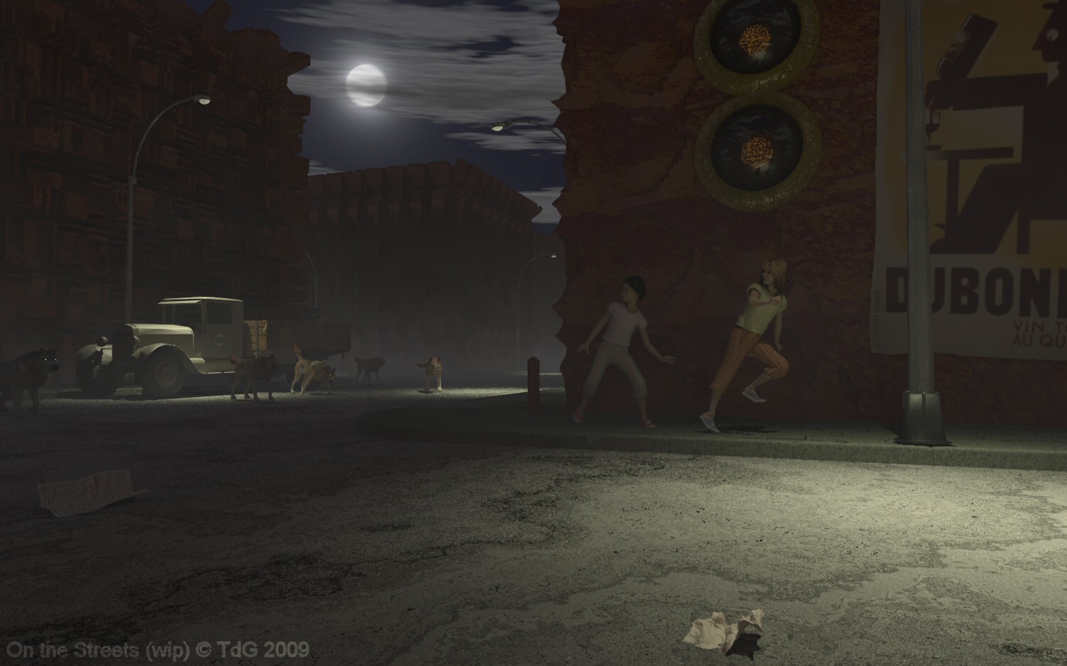 > To do: street lamps and wolves seem to float slightly above ground.