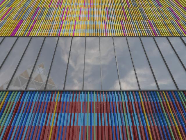 > in Munich is covered with 36000 colored ceramic rods. While this