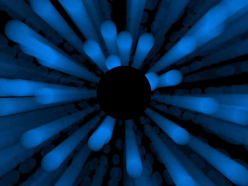 the back hemisphere and ending at a surrounding hollow sphere.