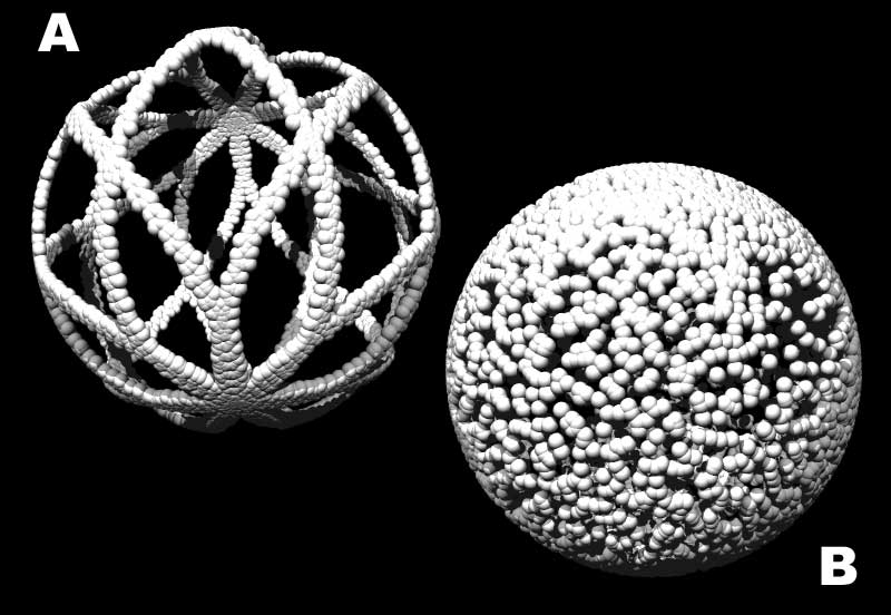 Interestingly, code B randomly distributed spheres of the whole area.