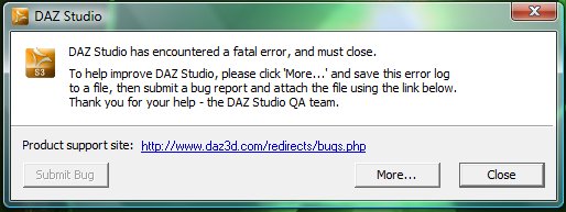 >> Yes, but DAZ crashes on my Vista 64 PC - I have to get on the wife's