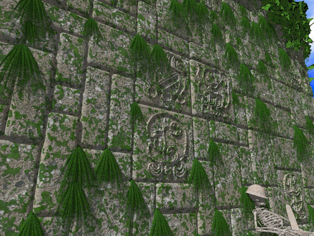 The ivy is generated by Thomas Hoppe macros, some textures are inspired