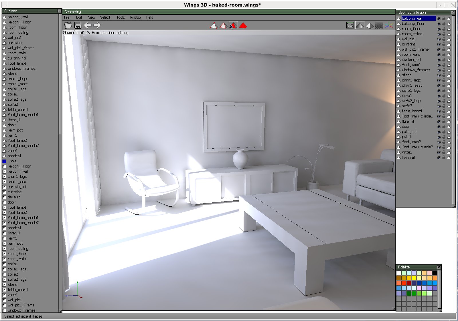 > show the lightmaps loaded back into Wings, illustrating what can be done