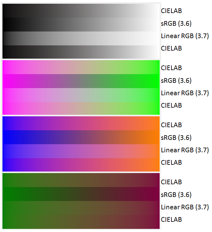 interpolation (3.6 method), linear RGB interpolation (3.7 method) and in