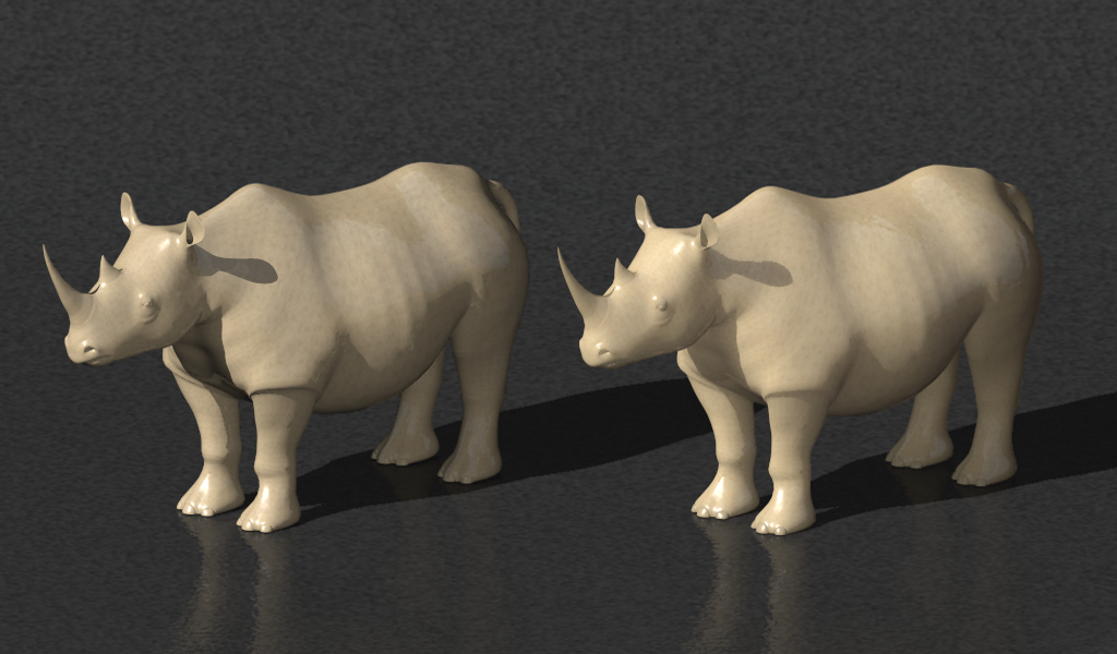> > Here are a couple of 10cm-long test rhinos, on left with no SSLT, on right