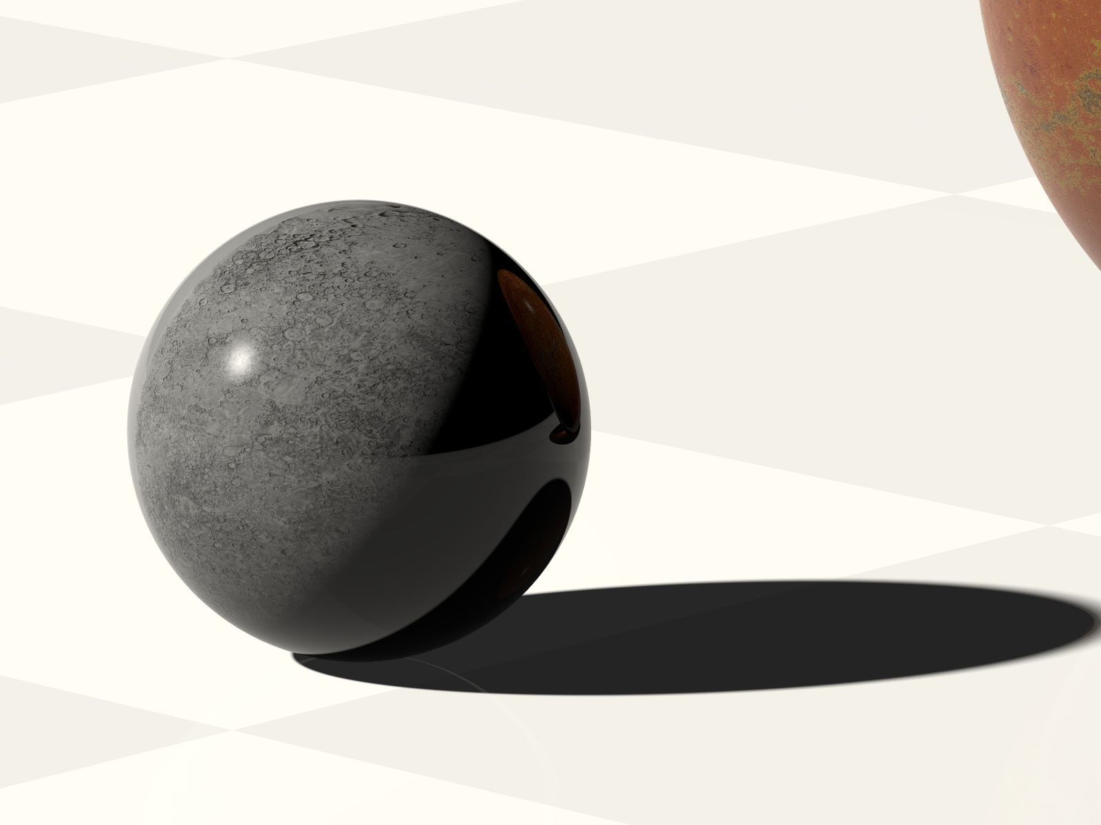 > In the case of mercury it leads to polished stone look> as the huge core prevents transparency and caustics. I'm> also not so happy with the moon. The latter is actually> quite transparent but due to its bland color appears> more like stone than glass anyway.