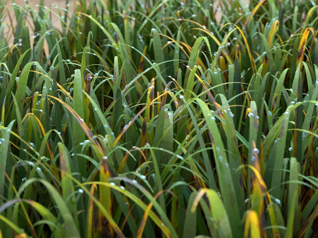 The grass is superb, I really like it. The drops are indeed a bit spherical as