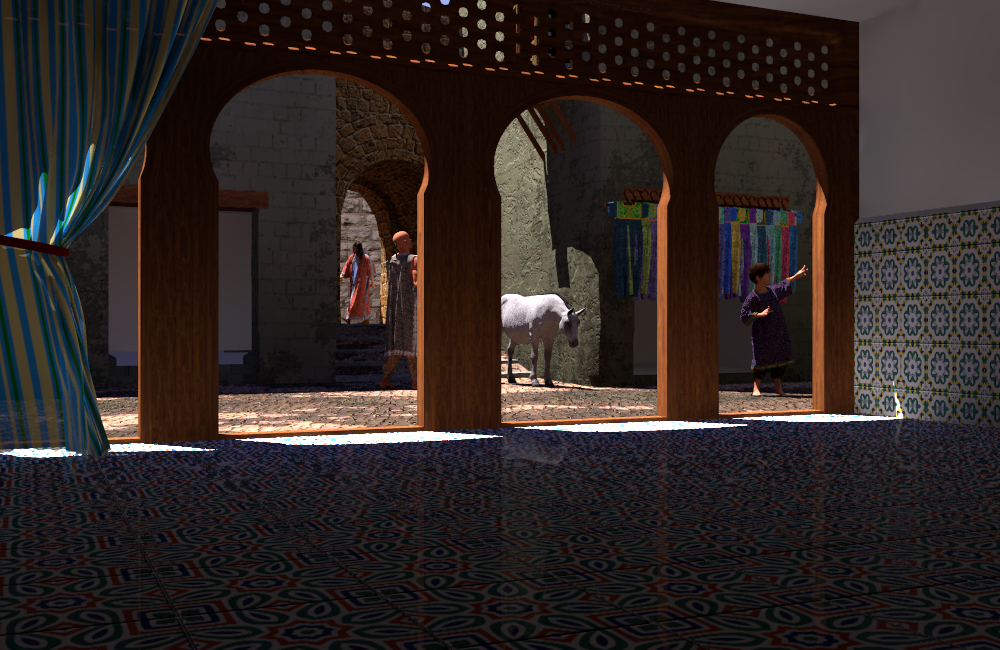 I have spent some time modelling a mashrabiya, hardly visible in this