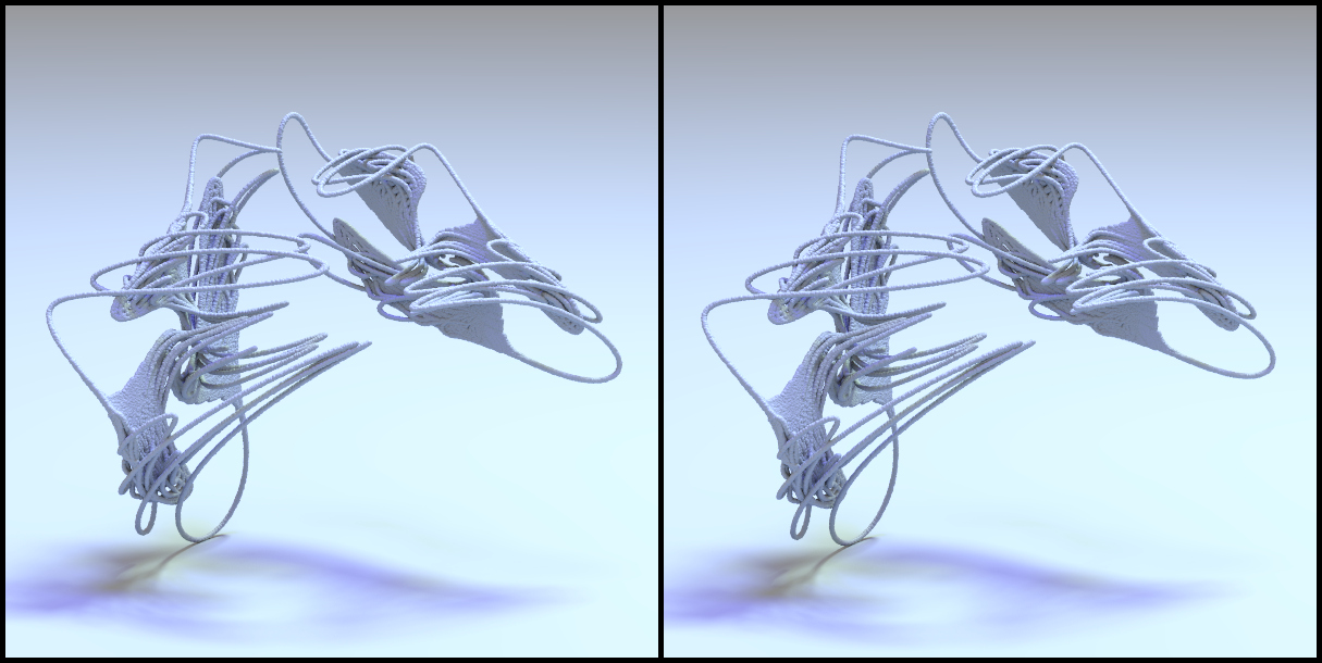 >> Attractors again, this time in cross-eye stereo pairs. To view, cross