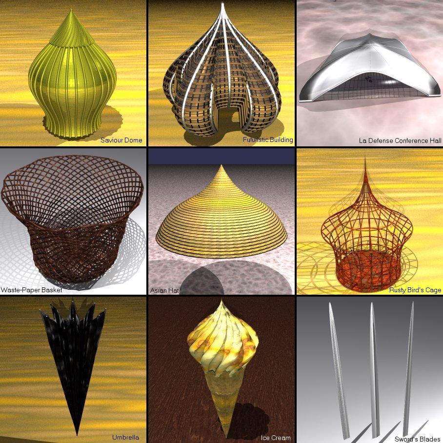 (sword's blade, umbrella, ice-cream, futuristic building, etc.).