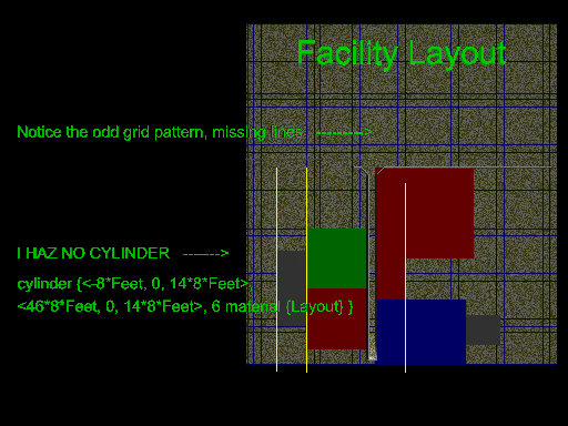 Some of the yellow layout "lines" (and these are HUGE cylinders) also