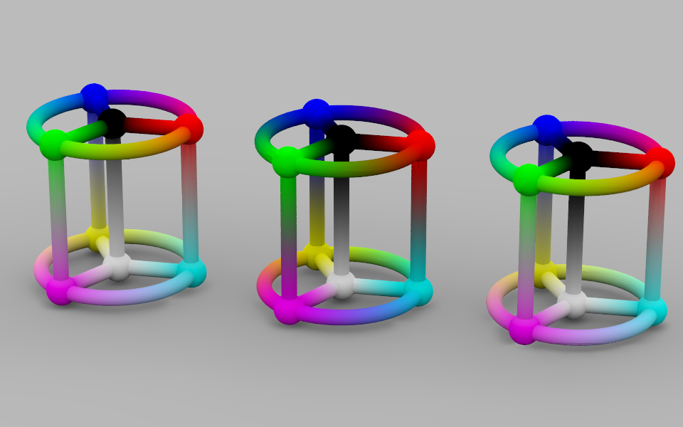 Three versions of a test thingumajig with plenty of gradients, in an