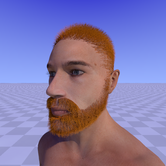 > skull and 30k hairs for the beard. Basic hair is one mesh2 strand.