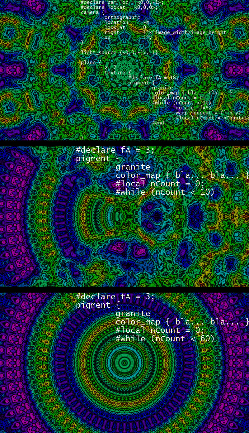 > In short, rotation + warp repeat y flip y acts as a kaleidoscope, as long as you