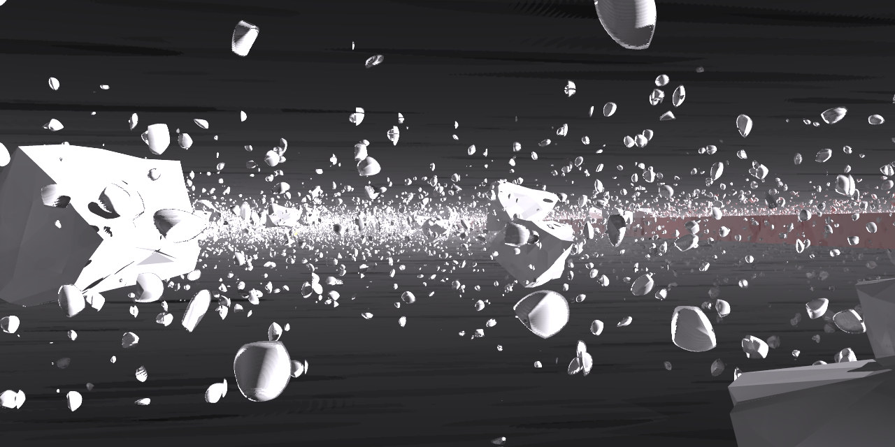 Media to simulate the sub-millimetre particles; reddish zone to indicate