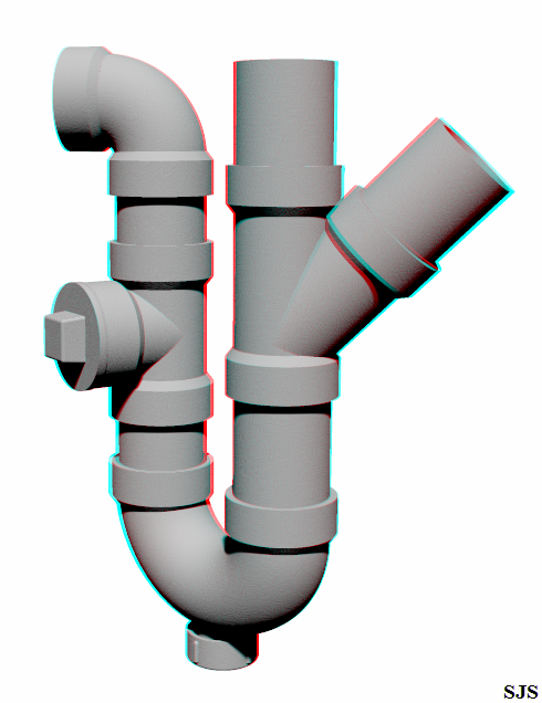 > A grey scale anaglyph view able with red/cyan 3d glasses.>> Roughly based on ABS plastic pipe for DWV, 1 1/2 inch pipe.>> Comments welcome:>> Stephen S