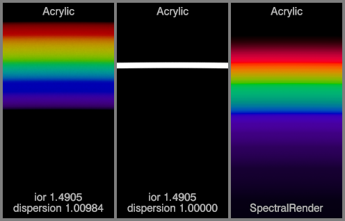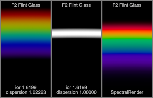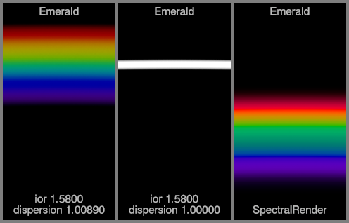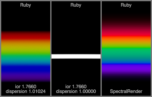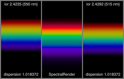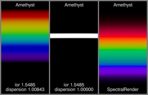 The left spectrum for each material uses the IOR and dispersion values