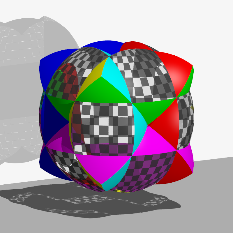 > On 5/27/19 3:15 PM, Le_Forgeron wrote:>> A bit of change in doing stellated polyhedron: here 7 intersecting>> spheres disposed as octahedron vertices (and one at center)>>> Ah, very cool.> > Might this be related to the new feature just merged into hgpovray38?> > Bill P.