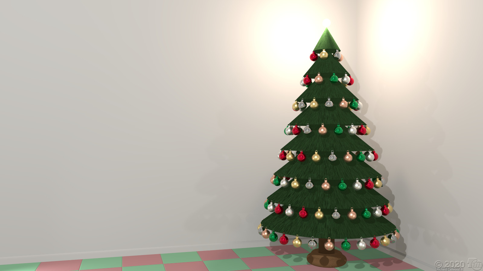 This tree and its ornaments are just a union of simple primitives: