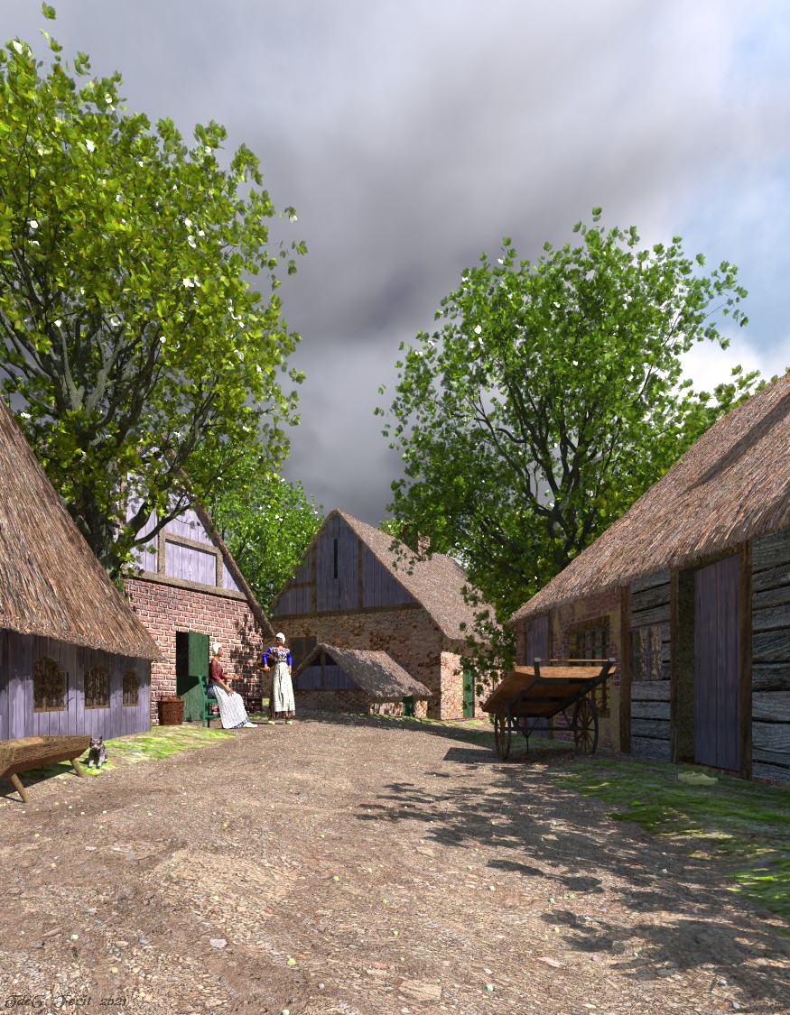 > > patterns (road, thatched roofs, dirt on walls) and the Displacement tool