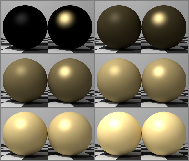 and diffuse 1 for all frames. The right sphere in each frame has the
