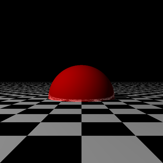 > the sphere and plane, and a light source is added to illuminate the scene."