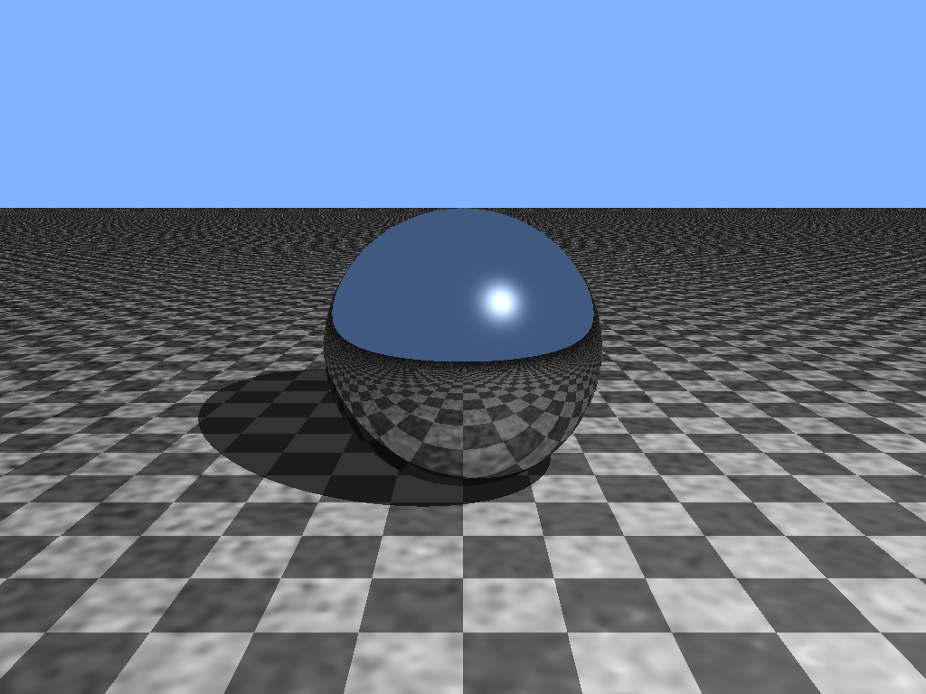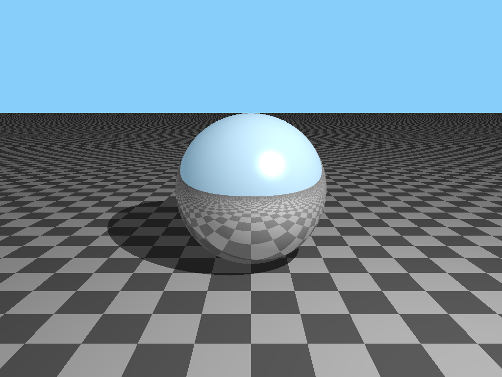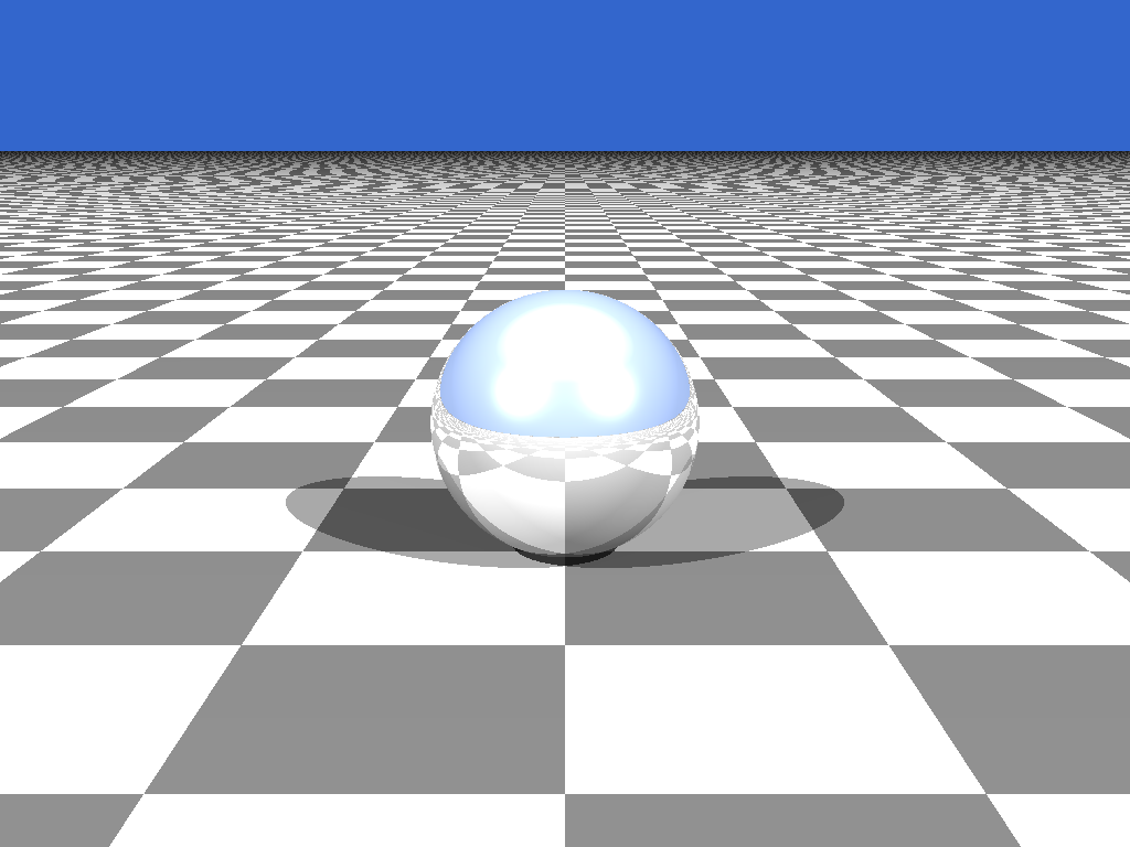 prompt "Generate the POV-Ray code for a reflective sphere hovering over
