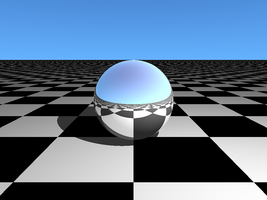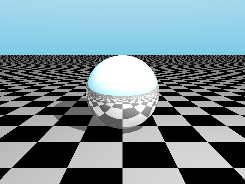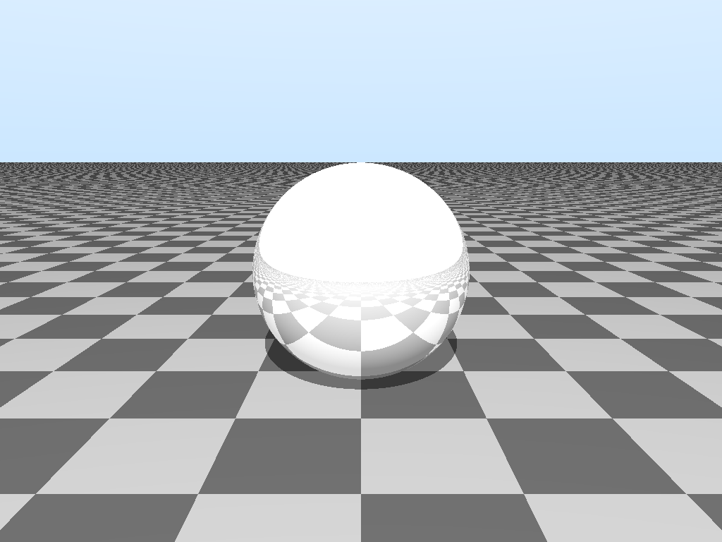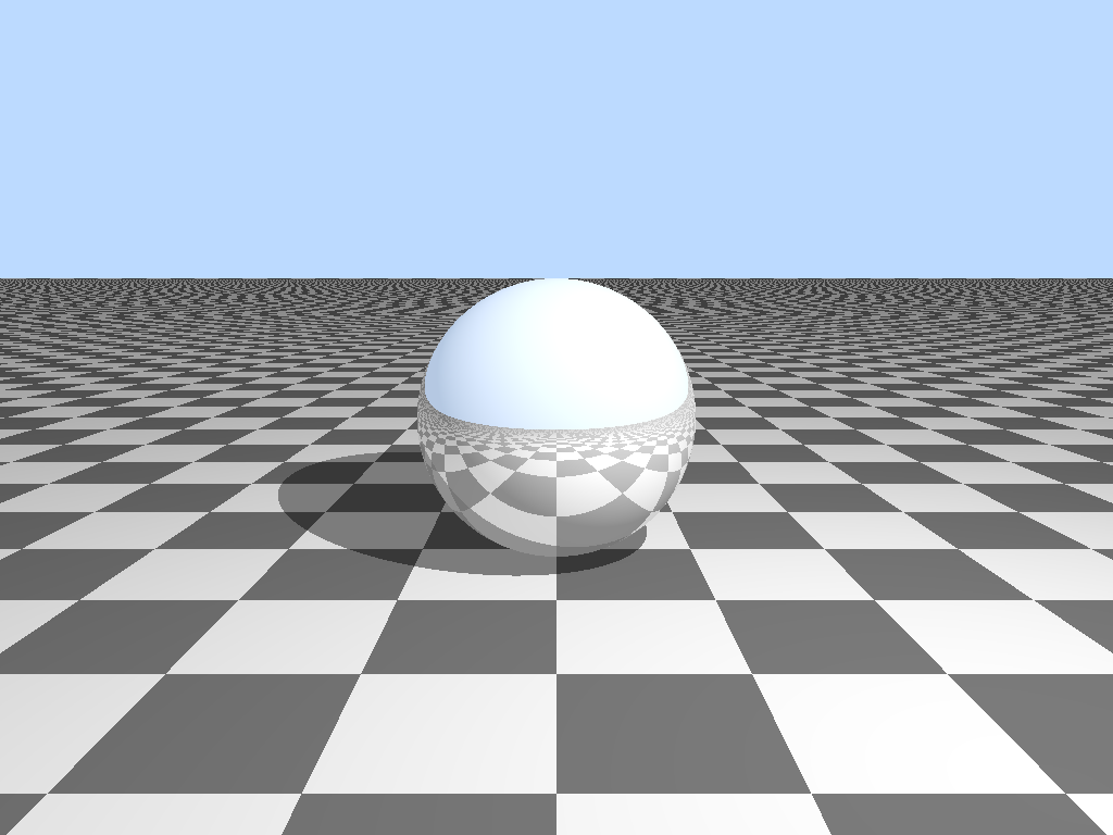 series: "Generate the POV-Ray code for a reflective sphere hovering over