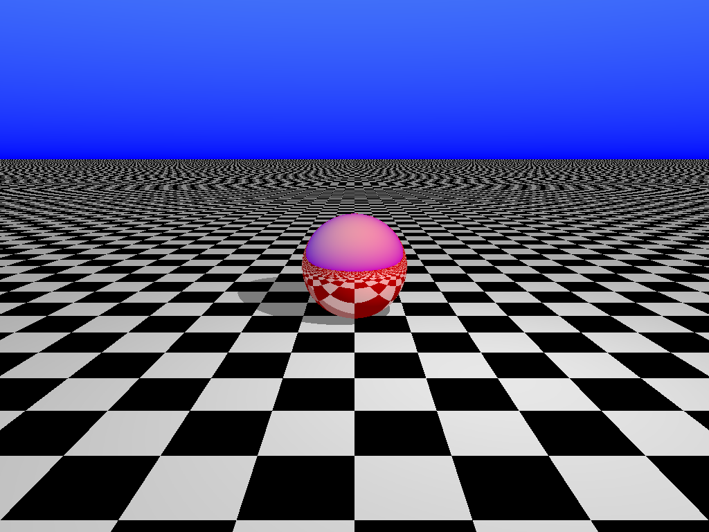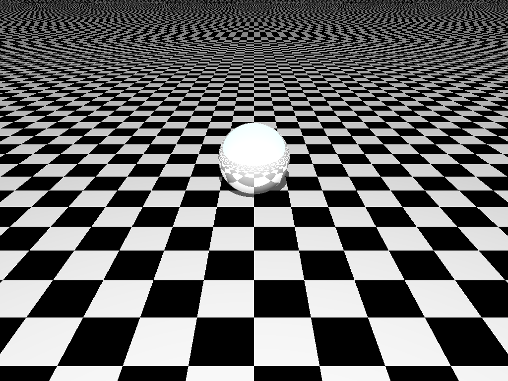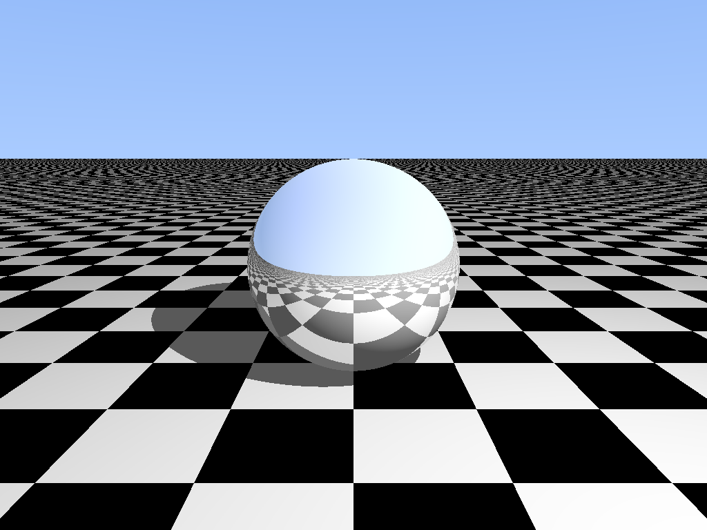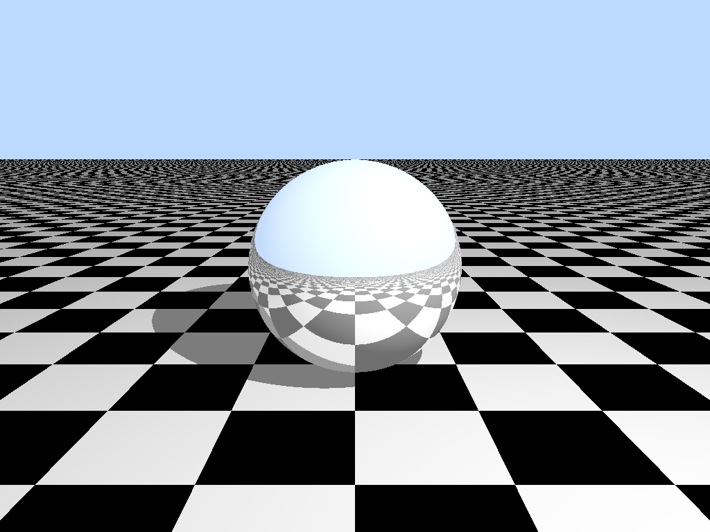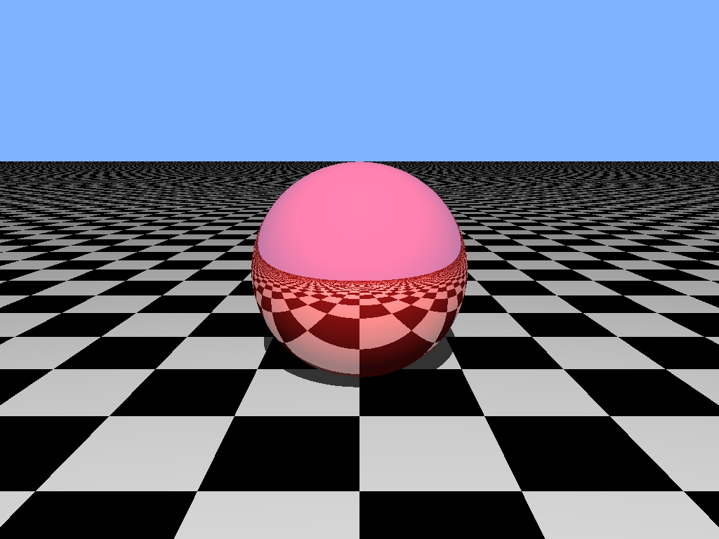 series: "Generate the POV-Ray code for a reflective sphere hovering over