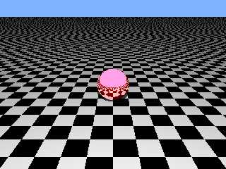 series: "Generate the POV-Ray code for a reflective sphere hovering over