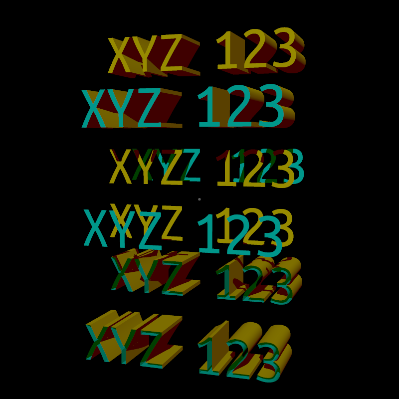 exterior surface treatments for text{} objects with +z thicknesses. This
