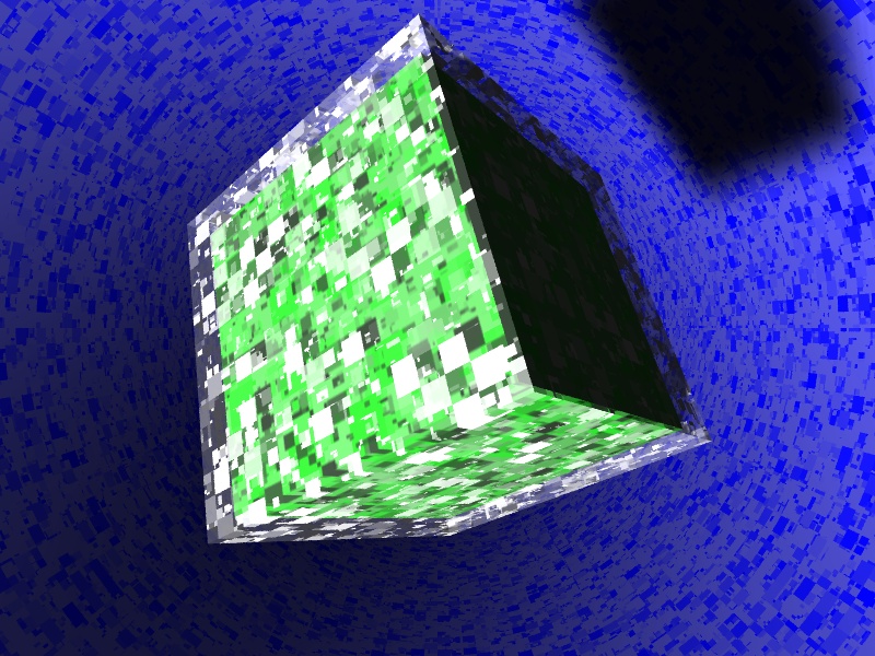 better show green light from inside of cube, and an normal light source,