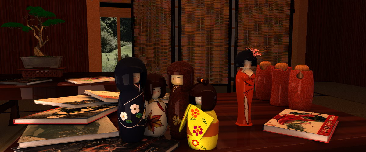 >> With radiosity and hdri map. the hdri map is the kokeshi's environment.