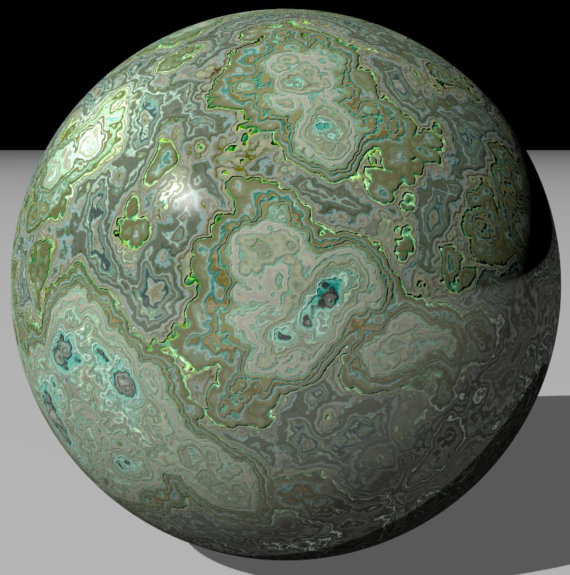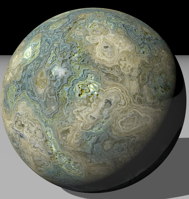layered on 4 spheres (diameter varies by 0.001), thus giving the effect of agate