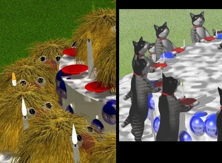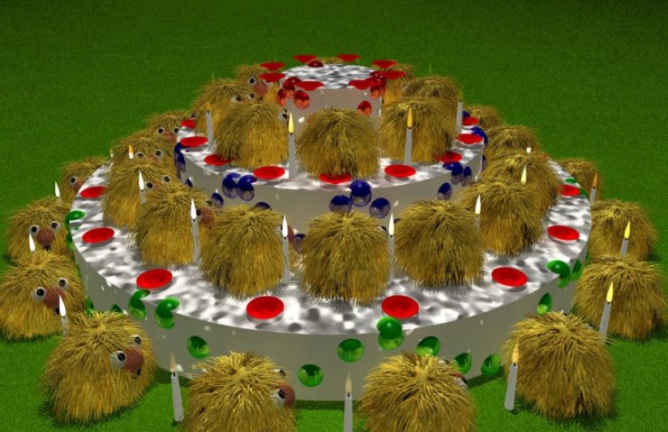 The pov-cake with monsters was rendered using radiosity. Near each candle is