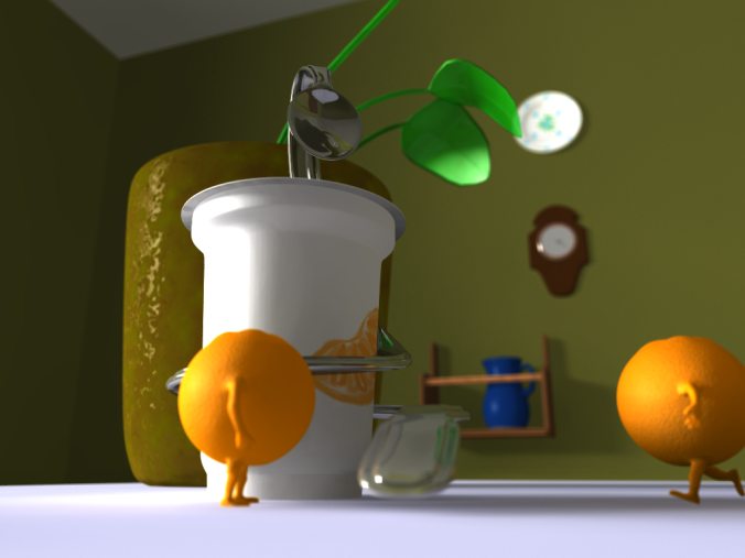 > Jim Charter <jrc### [at] msncom> wrote:> > Lukasz wrote:> > > I call it "Absurd reality" or "Domestic Fruit". Wings 3D and Povray.> > > Till next time.> > >> > >> >> ------------------------------------------------------------------------> > >> > I have always thought that still life arrangements induce> > anthropomorphism to some degree.>> Yeah! But oranges with legs can hardly be called "still" life :-)>> I like the spoon. It is my wallpaper of the day.>> Stephen>