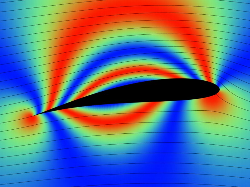 > potential flow over a Joukowski airfoil. A pretty surprising result,