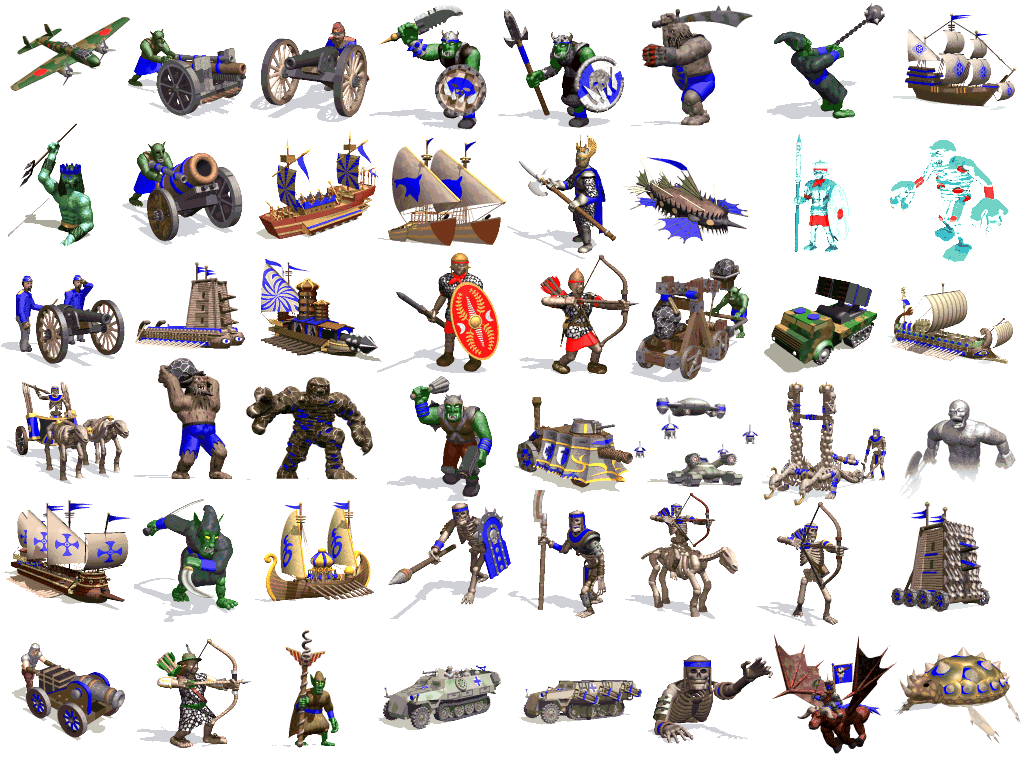> ships, vehicles, artillery, humans, planes... and I'm still busy on that :)