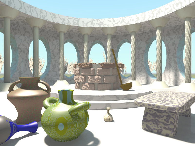 > marble/granite most everywhere, fog with distance 800 to make the horizon