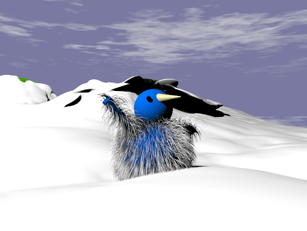 > Hasan3 spake:>> >> >> > I used makesnow and Margus Ramst's fur macro. But I changed same codes. He> > has been using "cone" object for the hairs. I had changed it with> > "sphere_sweep".> >> > How is it seeming?> >> > Best Regards.> > Hasan.>> Looks quite realistic to me - exactly like the tiny feathers on a young> bird. Well done!>> --> Stefan Viljoen> Software Support Technician / Programmer> Polar Design Solutions