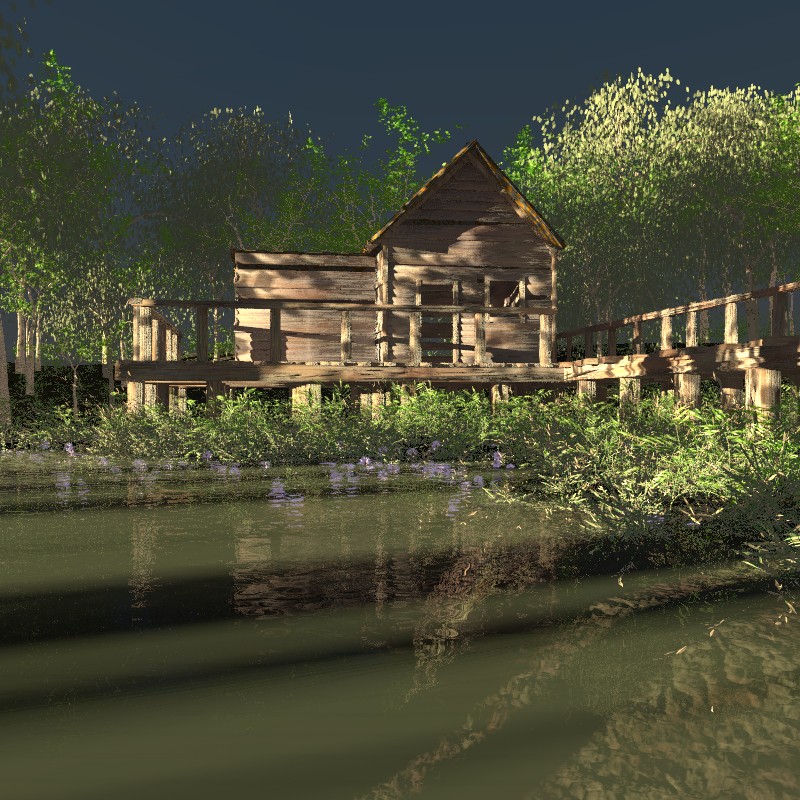 Looking good so far. I really like the lighting on the wooden building.