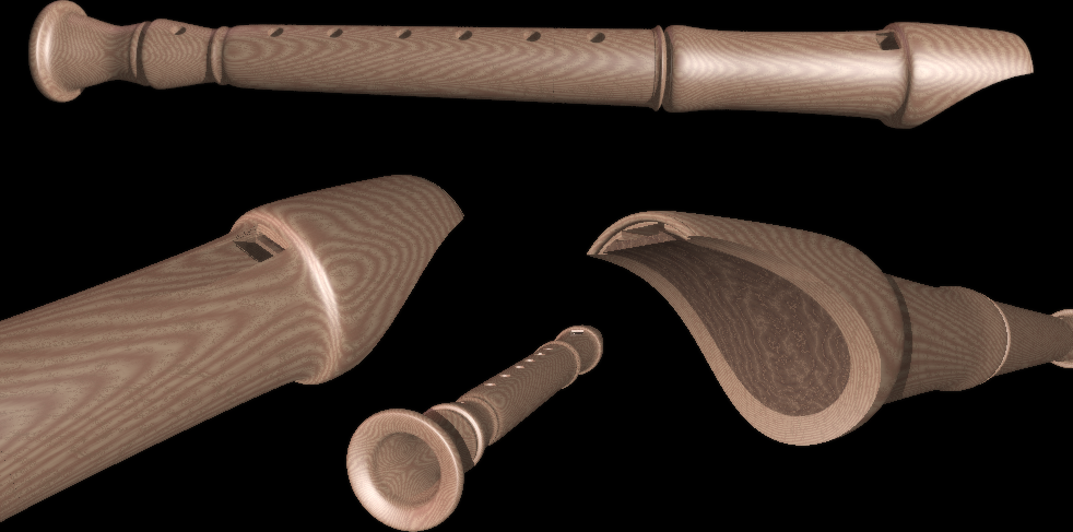 > Scale model of an oak recorder I've owned since childhood. The body was> modeled with Moray, CSG cutaways in POV.