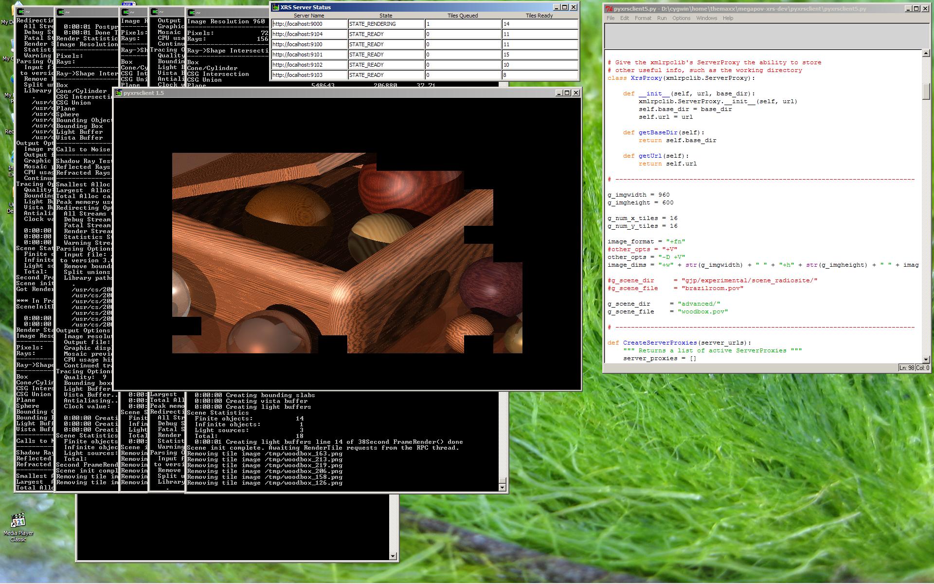 Attached is a screen shot of a Megapov XRS distributed render in action.