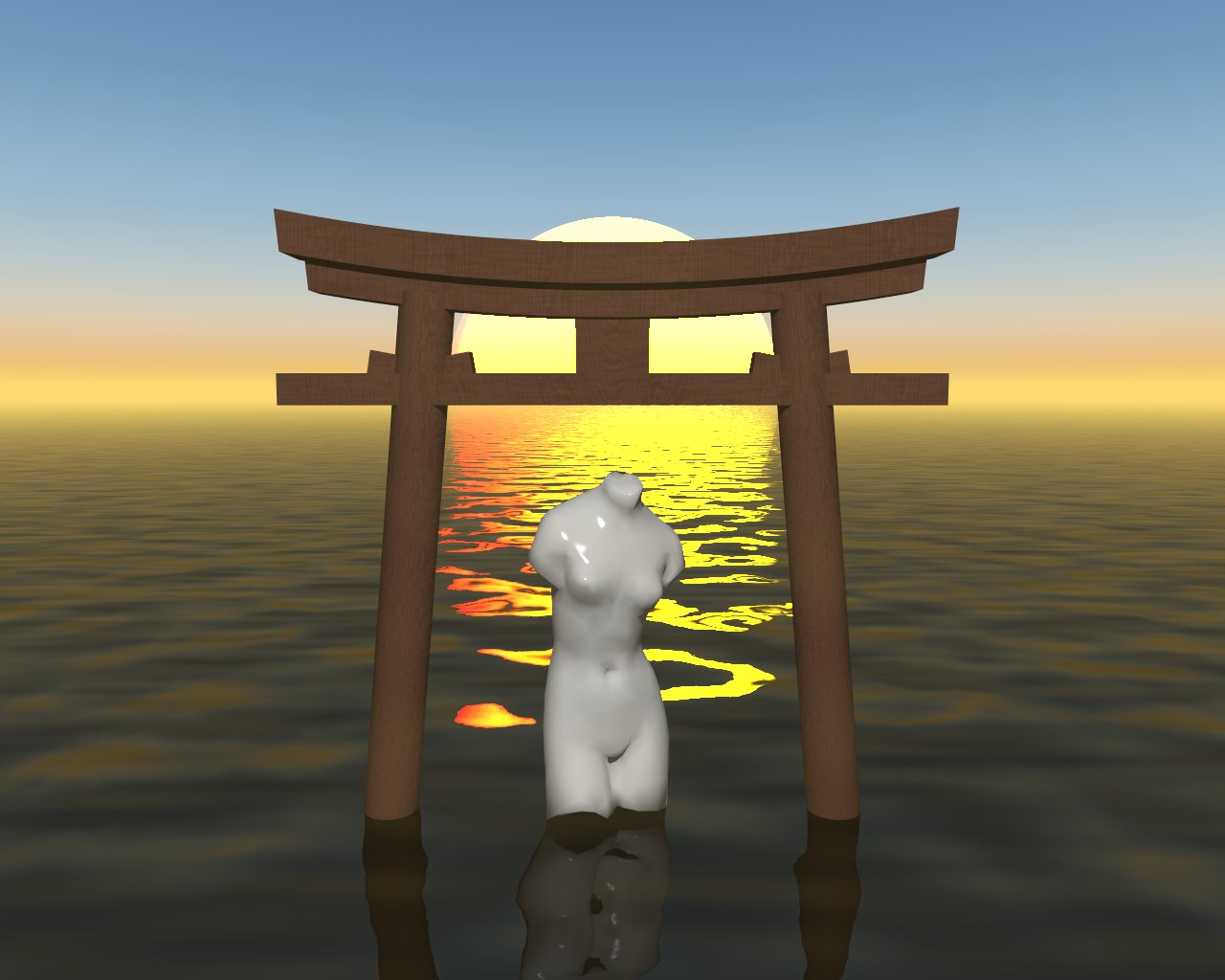 > And one more Pre-breakfast image(inclusive the project archive).> The idea I want to fix with this scene, is the attempt to mix> raditional japanese and european elements.