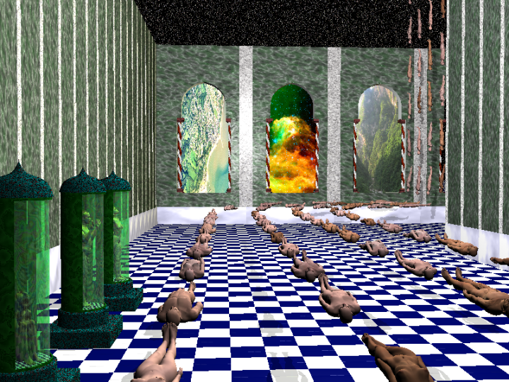 > each other. Now they distract the viewer from the stream of bodies. Maybe
