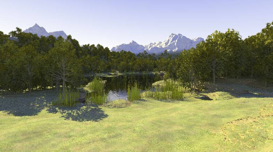> Ok, so I've added some reeds around the lake, thickened the forest, and