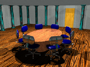 columns, broken by the modern looking chairs. Try scaling that down,