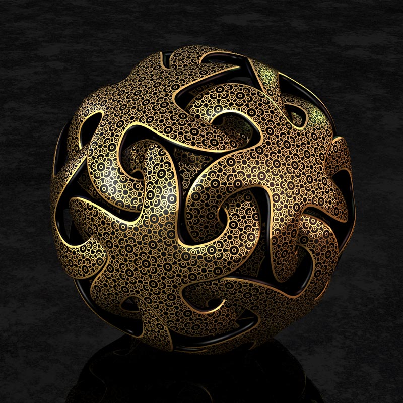 > A pigment_pattern was used to get the gold and black textures.